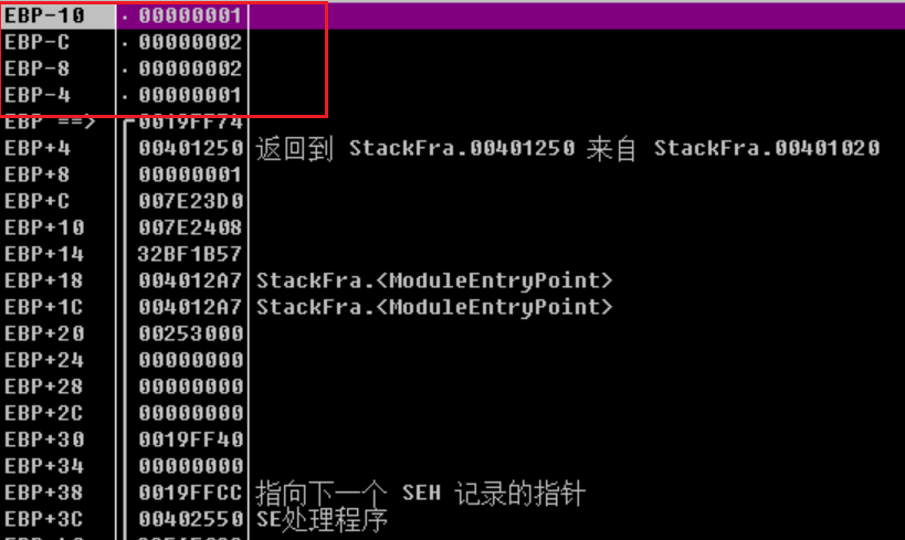 栈帧还是很重要的,因为在IDA看汇编指令的时候,会经常出现EBP(栈帧指针,即Extended Base Pointer)