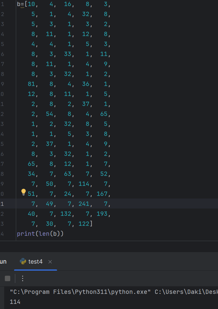 b=[34,63,52,50,114,51,24,167,49,241,40,132,193,30,122]