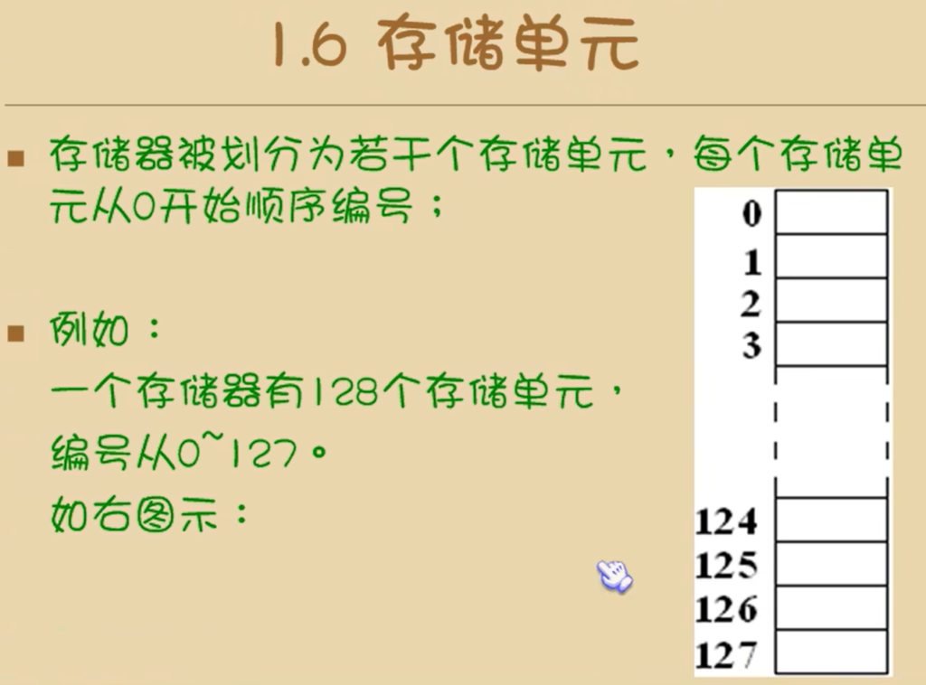 存储器被划分为若干个存储单元,每个单元都从0开始顺序编号。如图,