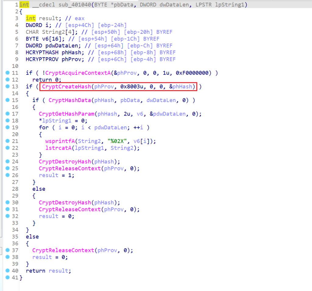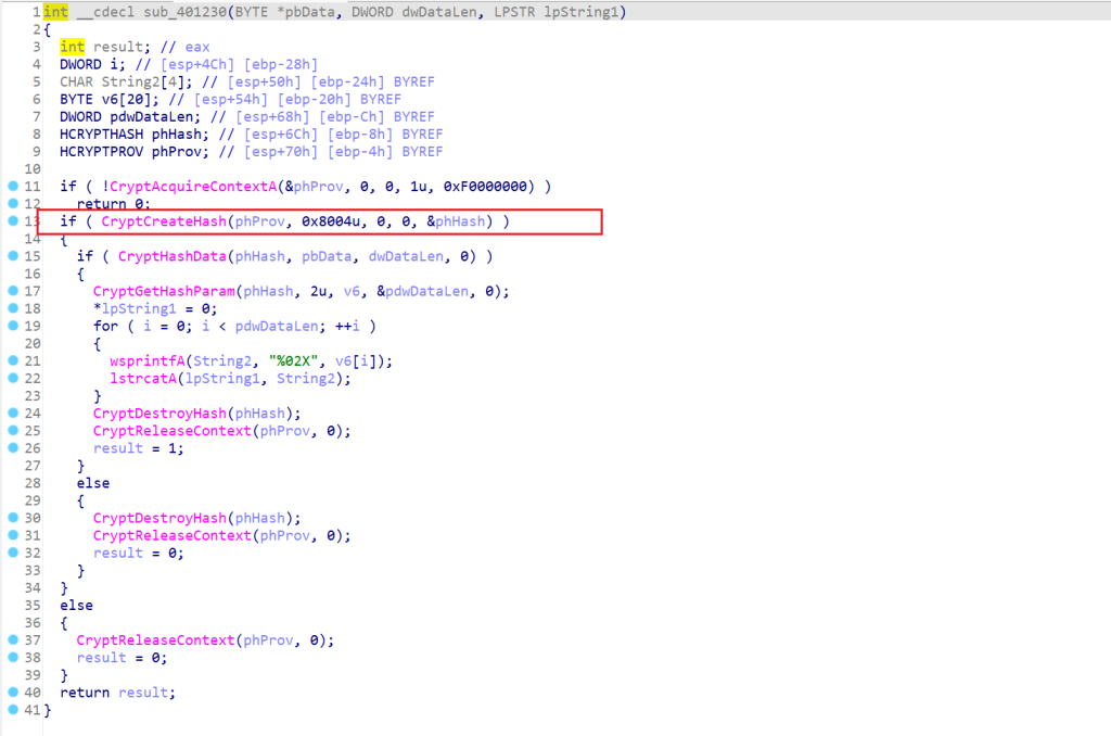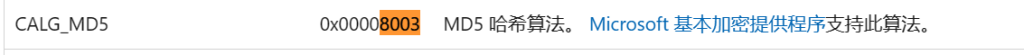 和上面那个SHA1加密函数相似,但是这里的算法标识符变成了0x8003u,再查阅微软的文档