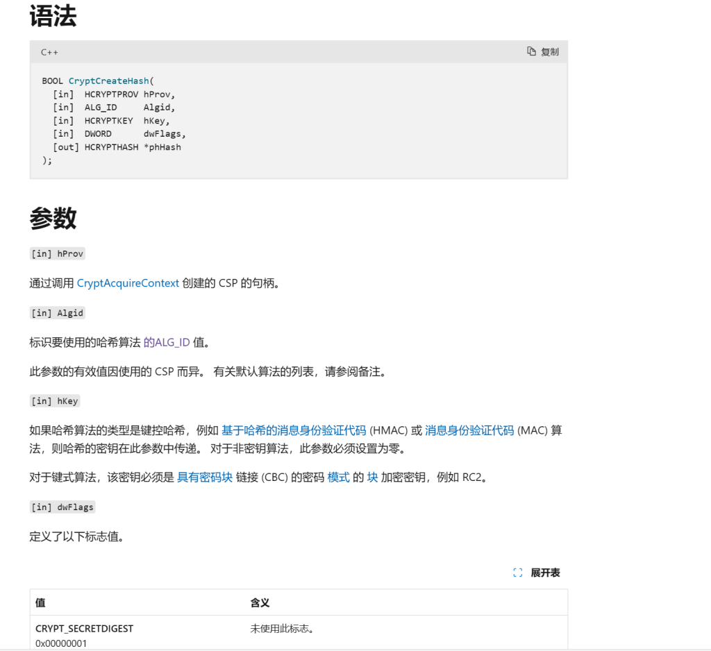 重点关注第二个传入的参数Algid,这里说用于标识要使用的哈希算法,问了AI,Algid的全称是Algorithm identifiers,即算法标识符,开发人员和系统管理员就可以用它来指定在不同的上下文中使用哪些密码学算法,该函数传入了0x8004u,我们点ALG_ID,进去看微软的文档,找到了