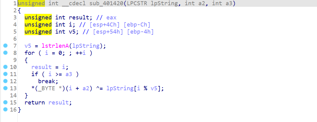 得到可执行文件.exe,直接用IDA打开,得到如下图,代码已经进行了部分重命名.