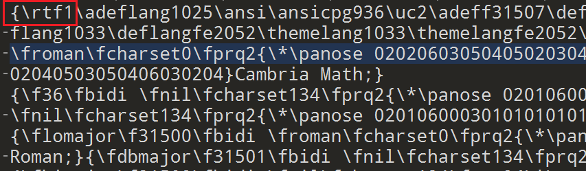在网上找半天找不到一个RTF文件,只能自己用Word文档转成一个RTF,打开看到文件头